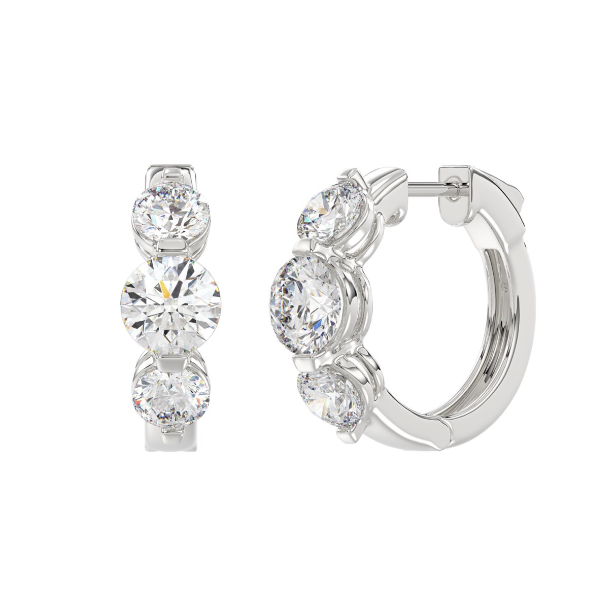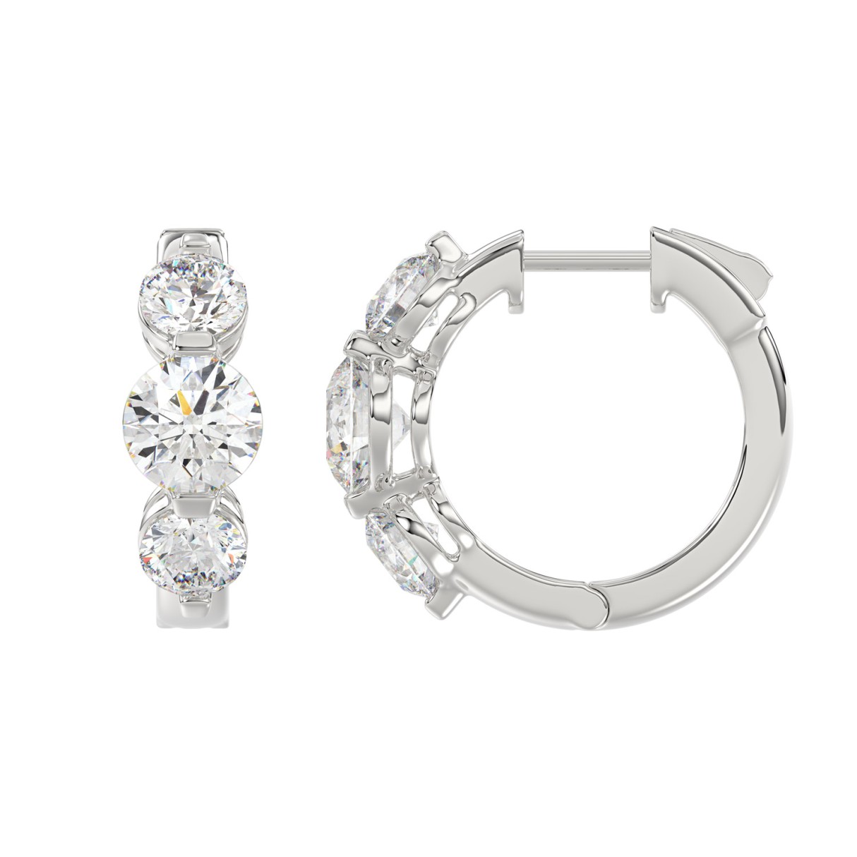 14K WHITE GOLD 4.00CT ROUND DIAMOND LADIES HOOPS EARRINGS