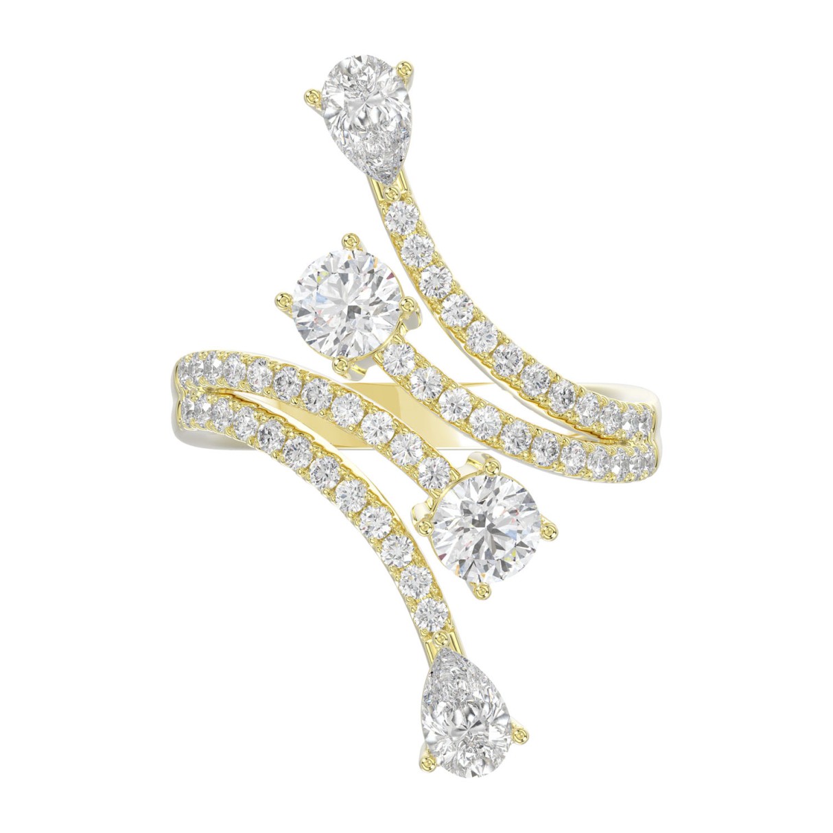14K YELLOW GOLD 2.00CT ROUND/PEAR DIAMOND LADIES RING