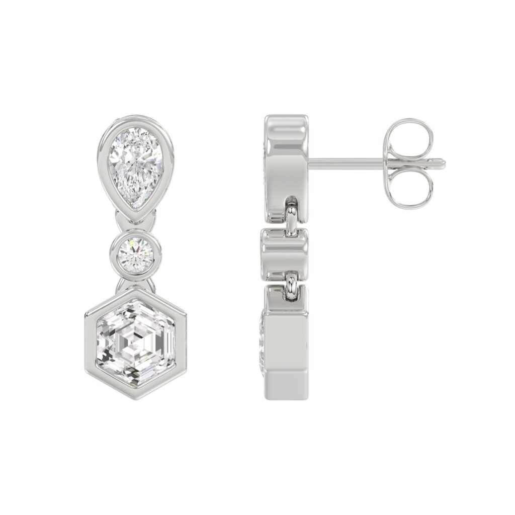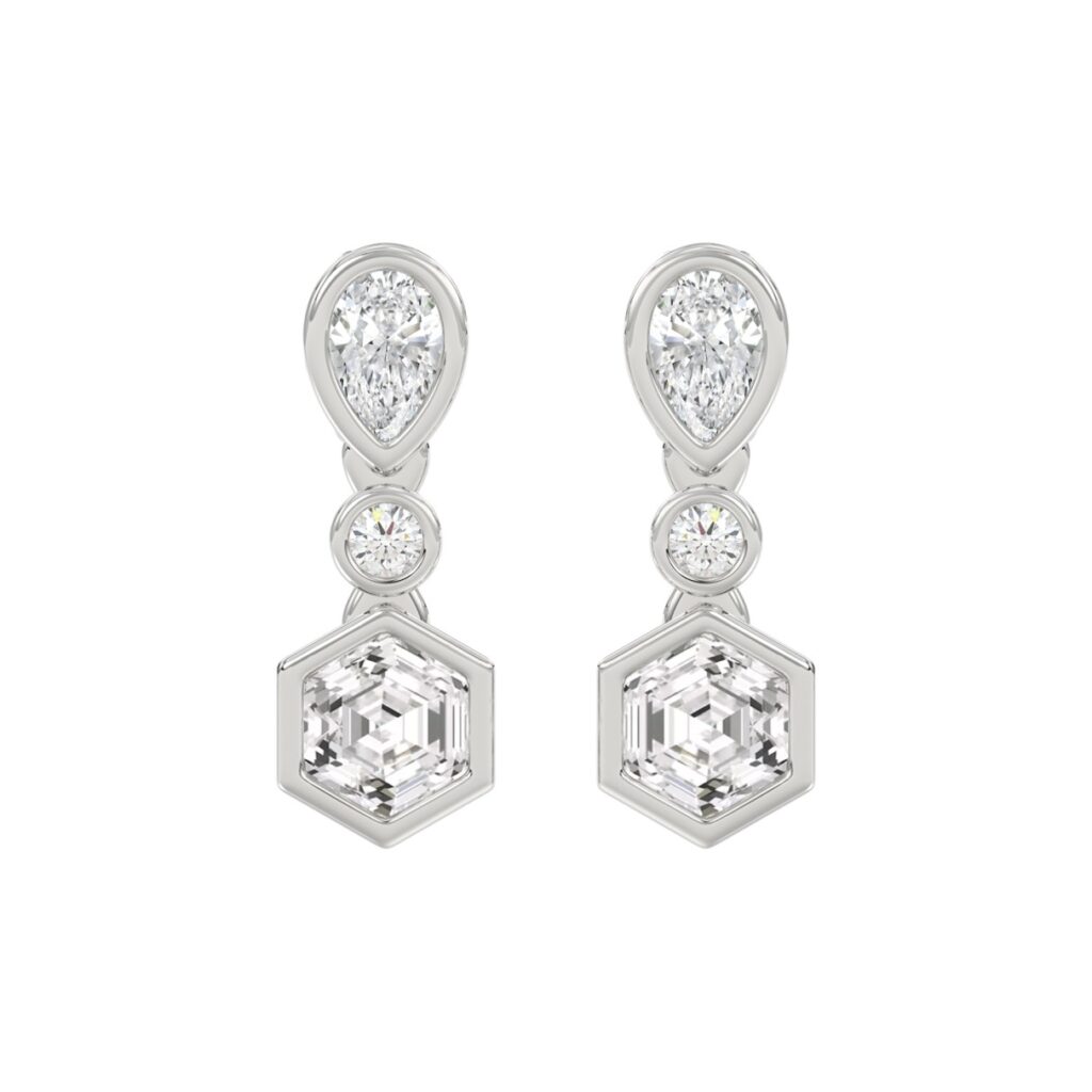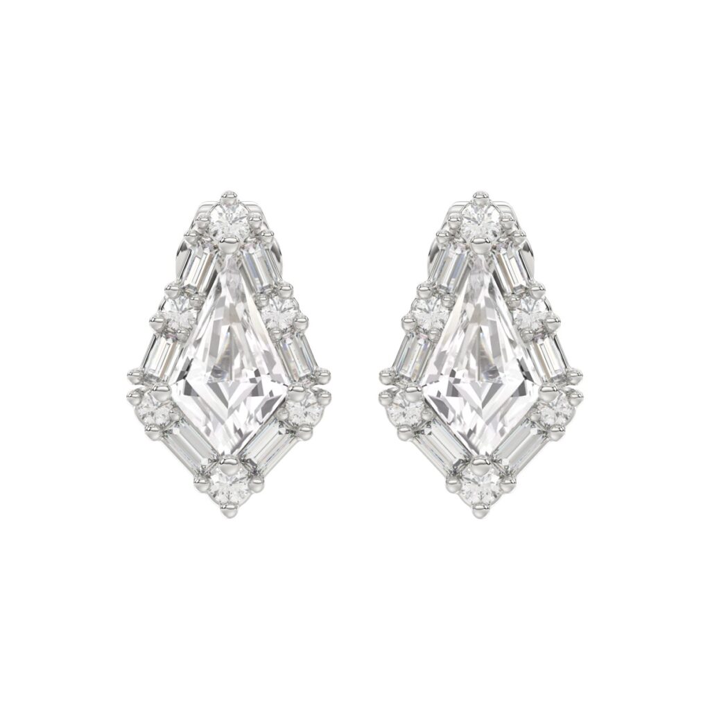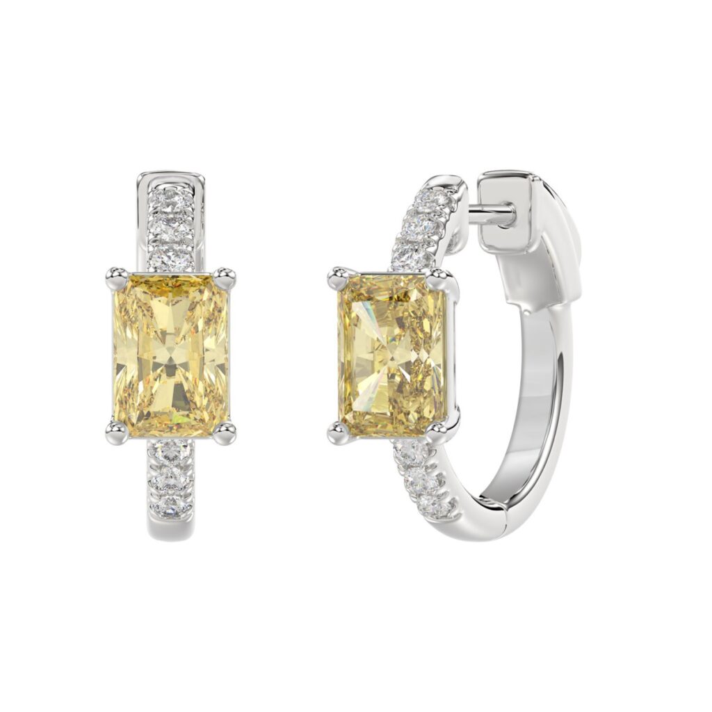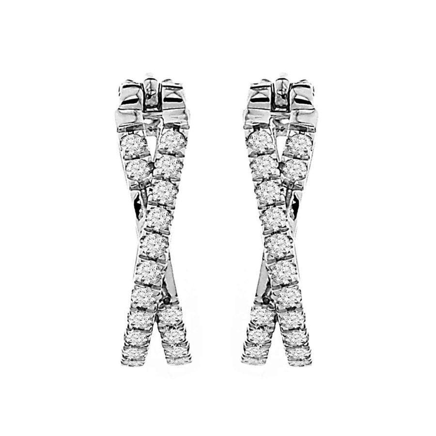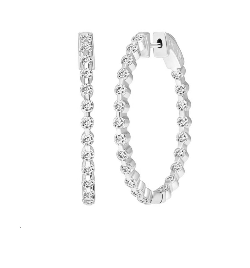 HOOP EARRINGS 0.50CT ROUND/BAGUETTE DIAMOND 14K WHITE GOLD