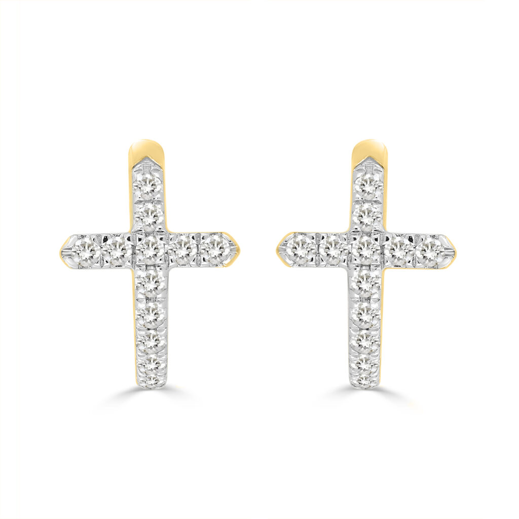 HOOP EARRINGS 0.33CT ROUND/BAGUETTE DIAMOND 14K YELLOW GOLD