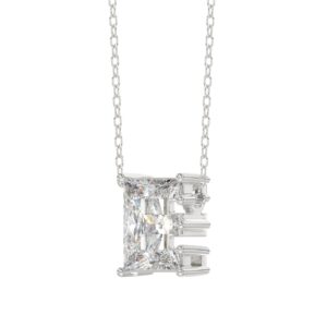 10K White Gold Diamond Initial “E” Pendant 1 1/2CT Fancy Cut Ladies Alphabet Charm with Chain