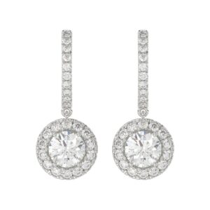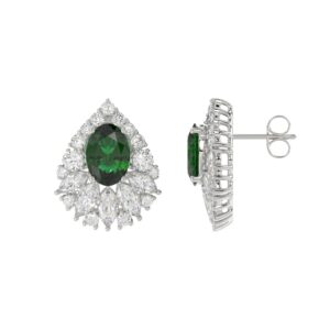 LADIES HOOP EARRINGS 2CT EMERALD DIAMOND 14K WHITE GOLD