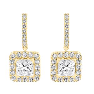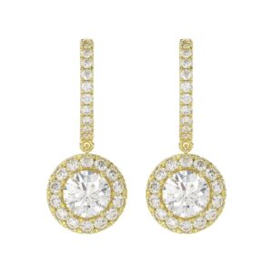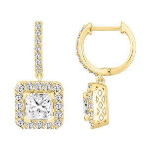 LADIES HOOP EARRINGS 2CT EMERALD DIAMOND 14K YELLOW GOLD