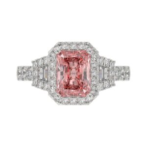 14K WHITE GOLD 2 1/2CT ROUND/CUSHION DIAMOND LADIES BRIDAL SET (CENTER STONE CUSHION PINK DIAMOND 2.00CT)