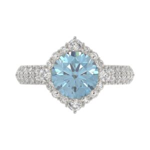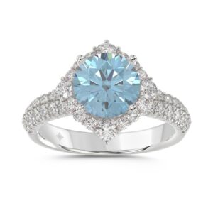 14K WHITE GOLD 2 3/4CT ROUND DIAMOND LADIES RING (CENTER STONE BLUE ROUND DIAMOND 2CT)