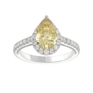 14K WHITE GOLD 2 1/2CT ROUND/PEAR DIMAOND LADIES RING (CENTER STONE PEAR YELLOW DIAMOND 2.00CT)