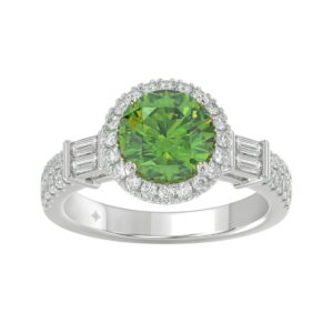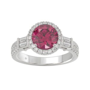 14K WHITE GOLD 2 1/2CT ROUND/BAGUETTE DIAMOND LADIES RING (CENTER STONE ROUND RUBY DIAMOND 2CT)