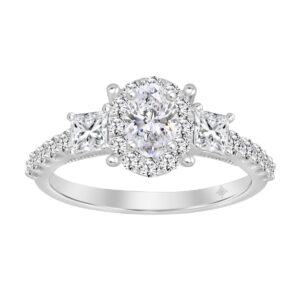 LADIES RING 1 1/4CT OVAL/PRINCESS/ROUND DIAMOND 14K WHITE GOLD (CENTER STONE OVAL DIAMOND 3/8CT)