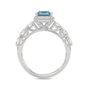 14K WHITE GOLD CRAFTED WITH 18K YELLOW GOLD SHANK 3 1/2CT ROUND/RADIANT DIAMOND LADIES RING (CENTER STONE RADIANT BLUE DIAMOND 2.00CT)