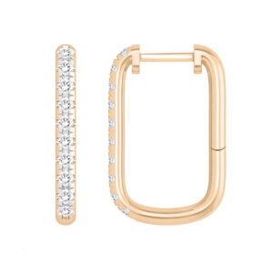 LADIES HOOPS EARRINGS 0.50CT ROUND DIAMOND 14K YELLOW GOLD