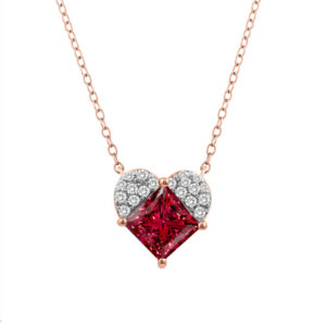LADIES PENDANT WITH CHAIN 1.13CT ROUND/RUBY DIAMOND 14K ROSE GOLD (CENTER STONE RUBY PRINCESS -1CT) PC