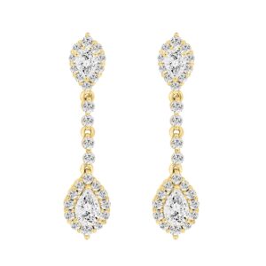 LADIES LINEAR EARRINGS 2 3/4CT PEAR/ROUND DIAMOND 14K YELLOW GOLD (CENTER STONE PEAR DIAMOND 1CT )