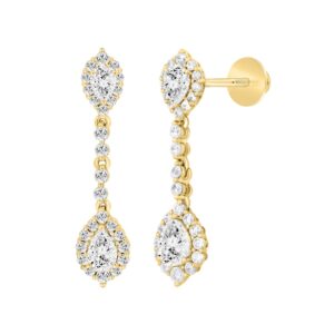 LADIES LINEAR EARRINGS 6CT MARQUISE/PEAR DIAMOND 14K YELLOW GOLD