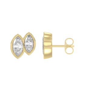 Elegant Ladies Earring 10K Collection Linked Hearts Yellow Gold 1.00CT Marquise Lab Grown Diamond (Color F-G -Clarity VS1/VS2)