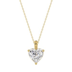 LADIES SOLITAIRE PENDANT WITH CHAIN 2CT HEART DIAMOND 14K YELLOW GOLD