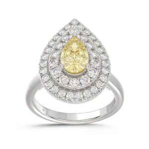 14K WHITE GOLD 2 1/2CT ROUND/YELLOW PEAR DIAMOND LADIES EARRING (CENTER STONE PEAR DIAMOND 1CT)