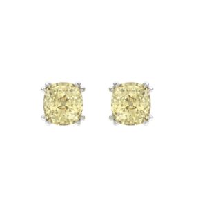 14K WHITE GOLD 1.00CT YELLOW CUSHION DIAMOND LADIES EARRINGS