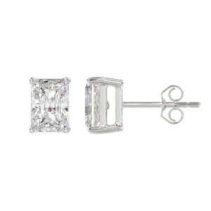 14K WHITE GOLD 4CT RADIANT DIAMOND LADIES SOLITAIRE EARRINGS