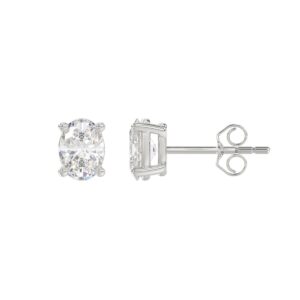 LADIES SOLITAIRE EARRINGS 1 1/2CT OVAL DIAMOND 14K WHITE GOLD