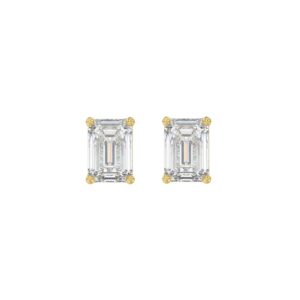 LADIES SOLITAIRE EARRINGS 1 1/2CT EMERALD DIAMOND 14K YELLOW GOLD