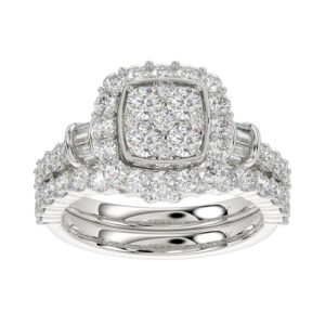 LADIES BRIDAL SET 2.00CT ROUND/BAGUETTE DIAMOND 14K WHITE GOLD