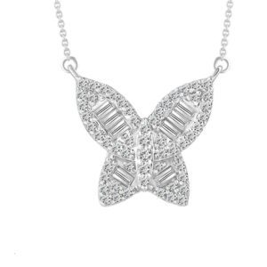 LADIES PENDANT WITH CHAIN 0.50CT ROUND/BAGUETTE DIAMOND 14K WHITE GOLD