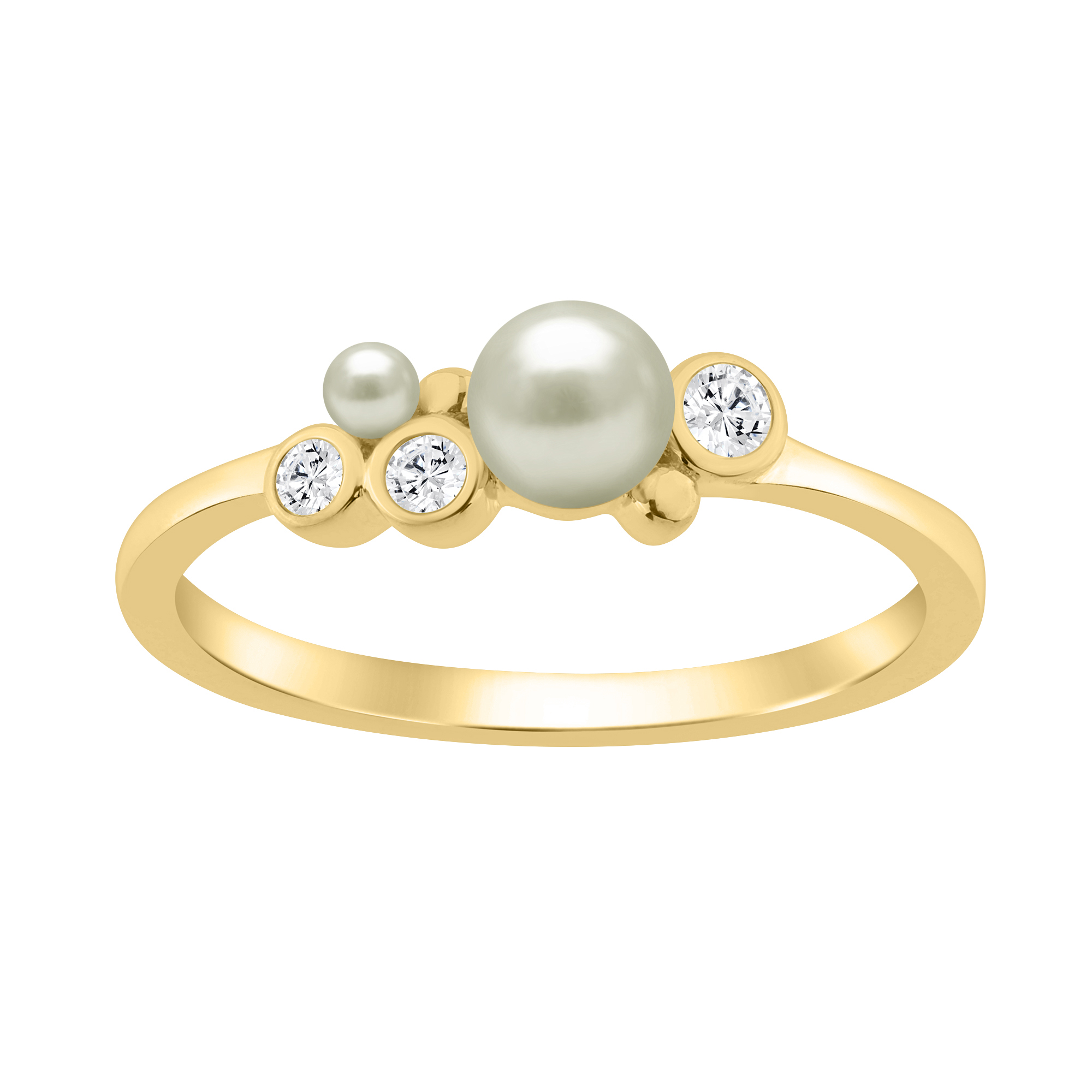 0.10 Ct Round Diamond And Pearl Fashion Ring – 14K Yellow Gold For Women