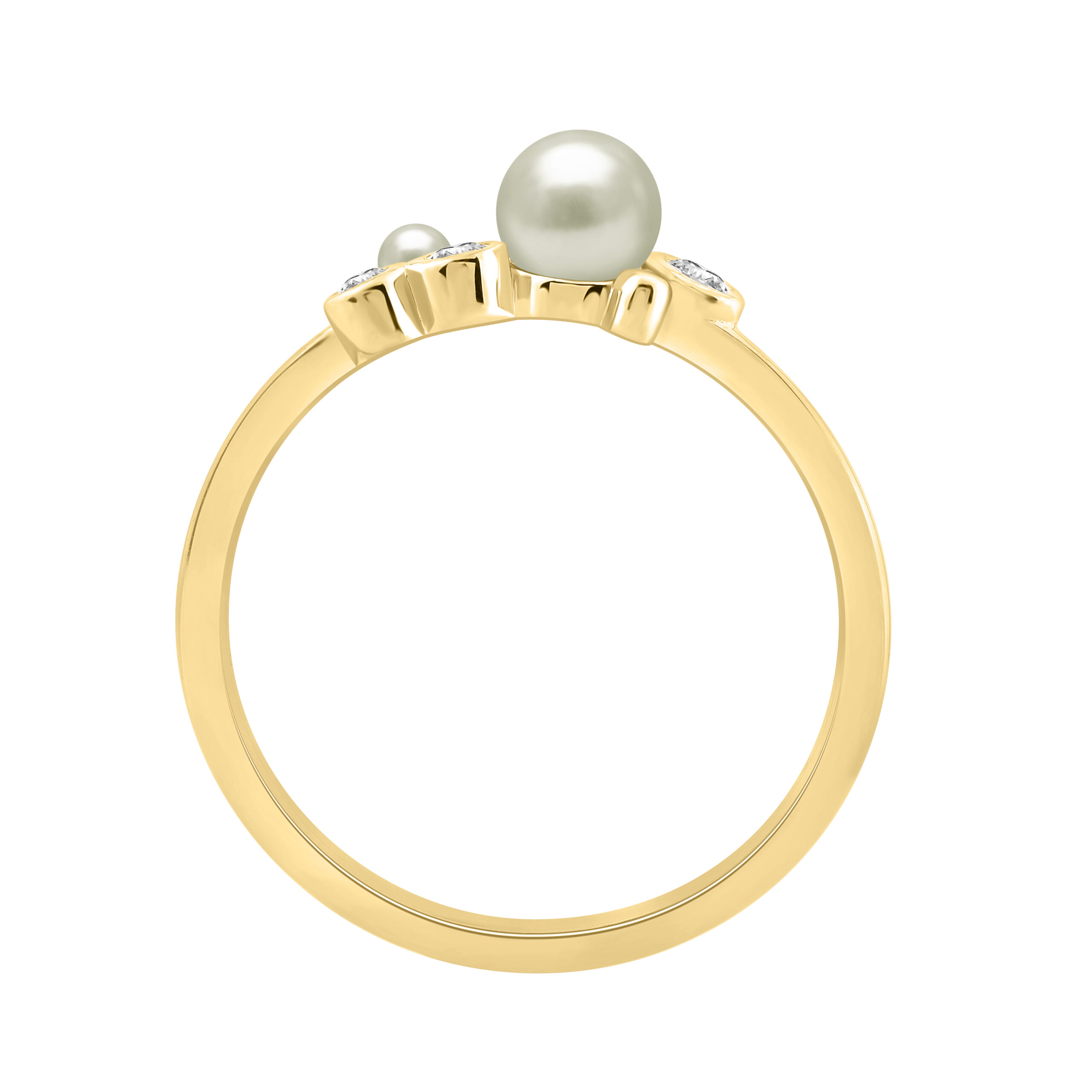 0.10 Ct Round Diamond And Pearl Fashion Ring – 14K Yellow Gold For Women