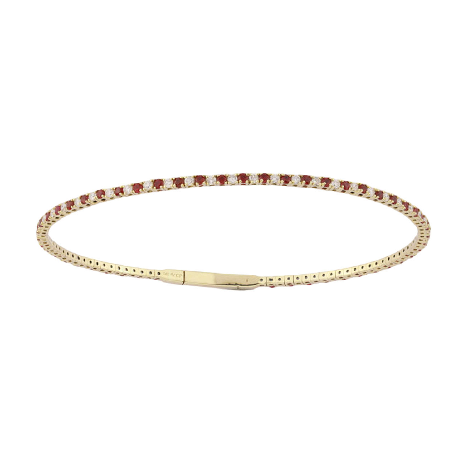 Home Bracelets/bangles 1.75Ct Ruby And Round Diamond Tennis Bangle 14K Yellow Gold Flexible Bangle For Women
