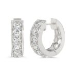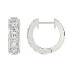 LADIES HOOP EARRINGS 1.00CT ROUND DIAMOND 10K WHITE GOLD