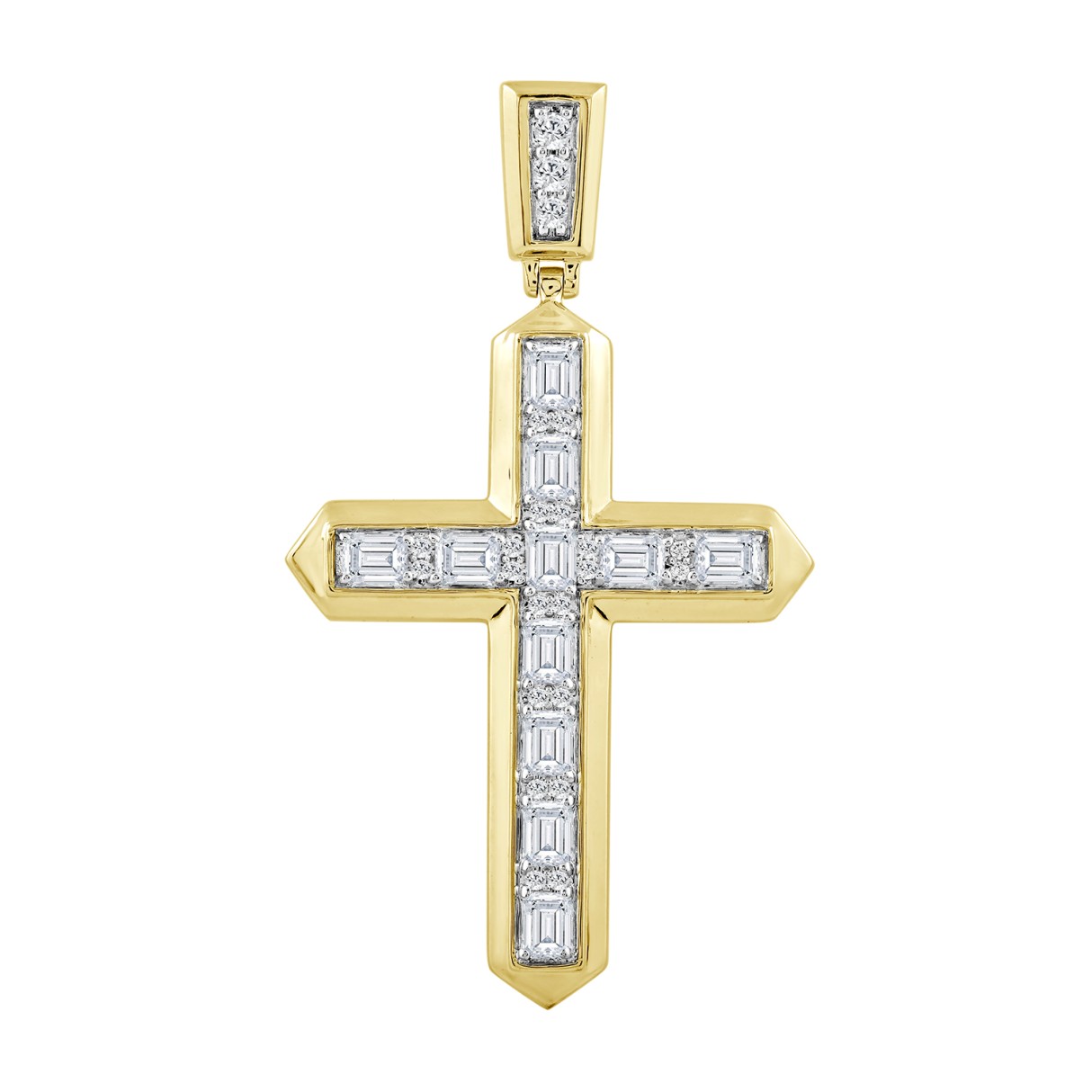 10K YELLOW GOLD 2 1/2CT ROUND/EMERALD DIAMOND MEN’S CHARM PENDANT