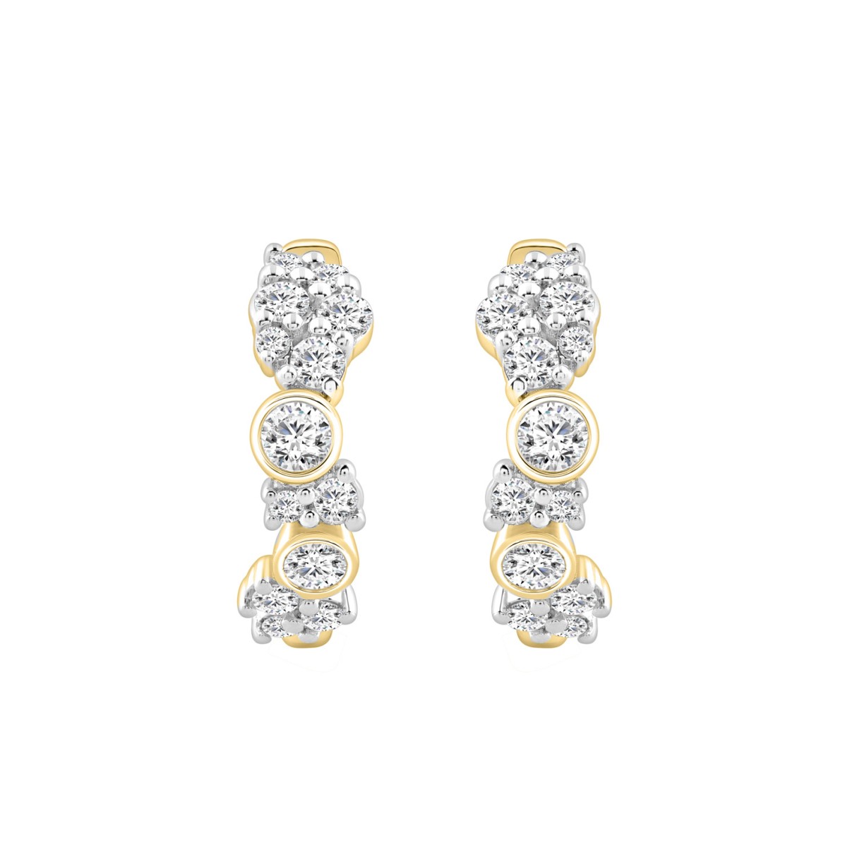 10K Yellow Gold 3/4CT Round Diamond Bezel-Set Hoop Earrings for Women (Color F-G -Clarity VS1/VS2)