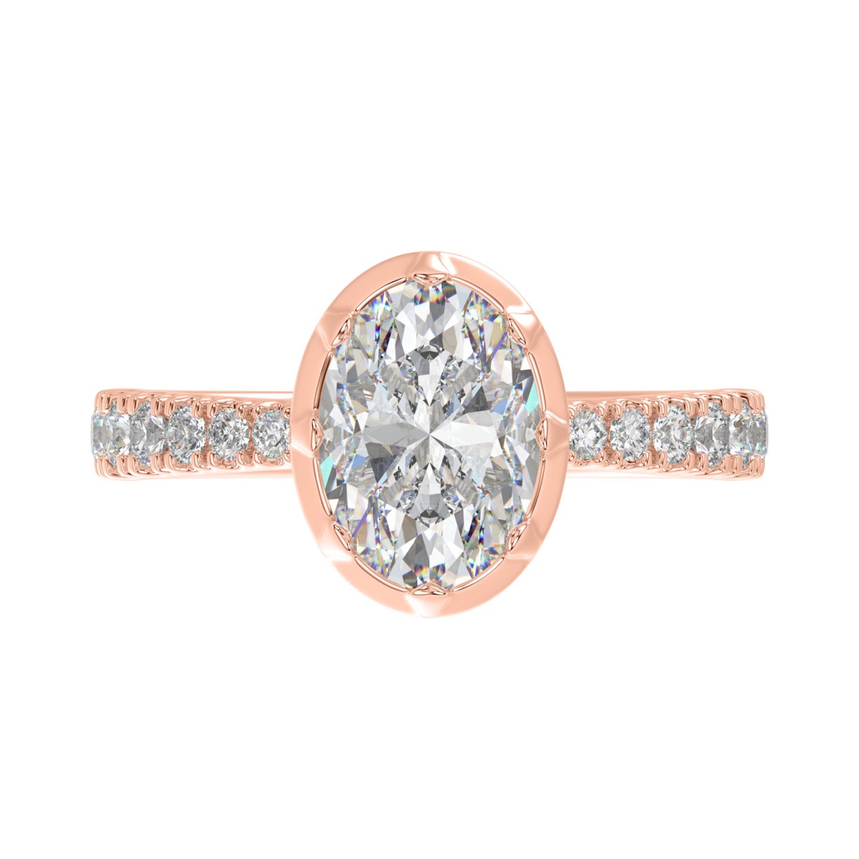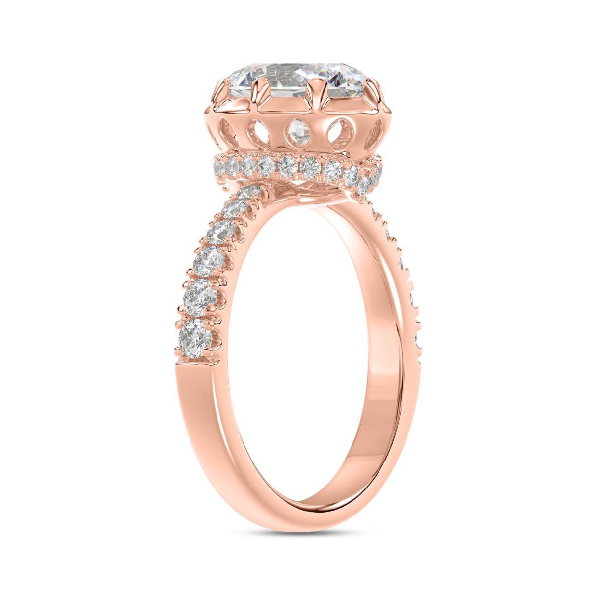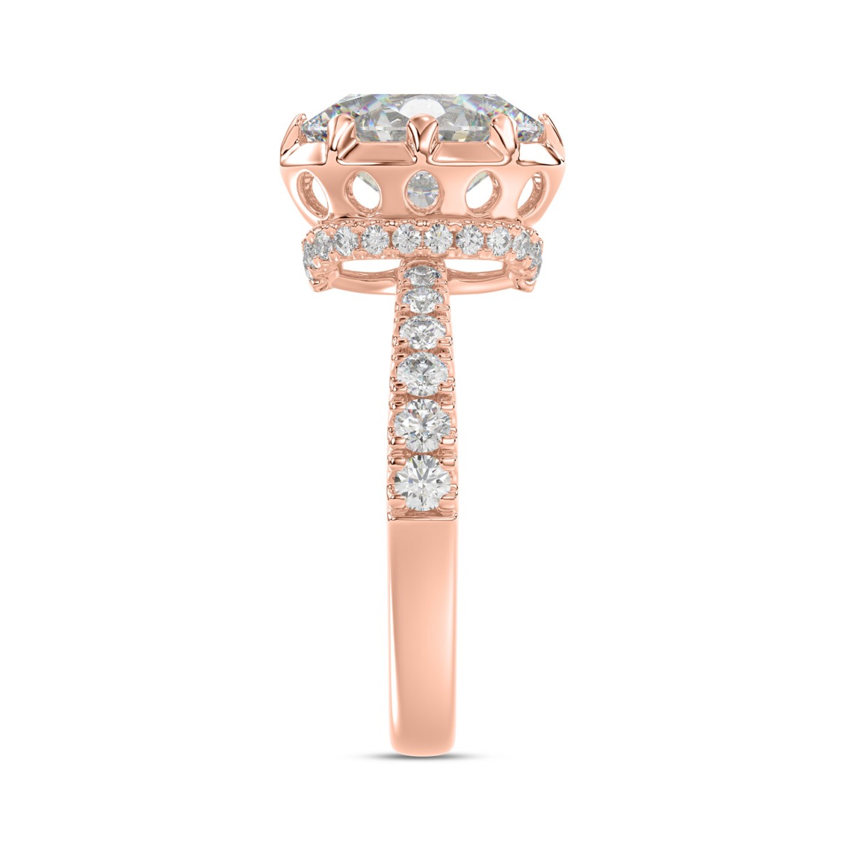 14K ROSE GOLD 2 1/2CT ROUND/OVAL DIAMOND LADIES RING (CENTER STONE OVAL DIAMOND 2CT)