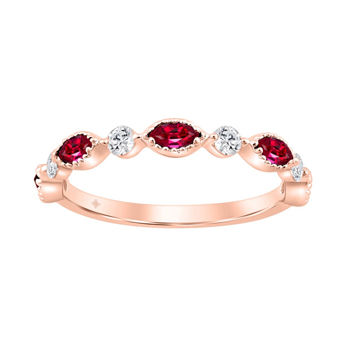Home Rings 14K ROSE GOLD 3/4CT ROUND/MARQUISE RUBY DIAMOND LADIES RING (CENTER STONE MARQUISE DIAMOND 1/2CT)