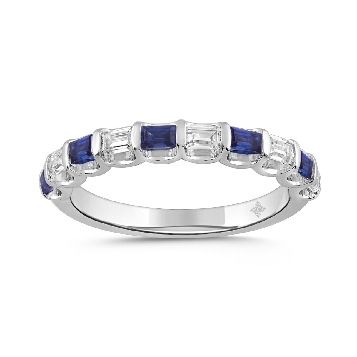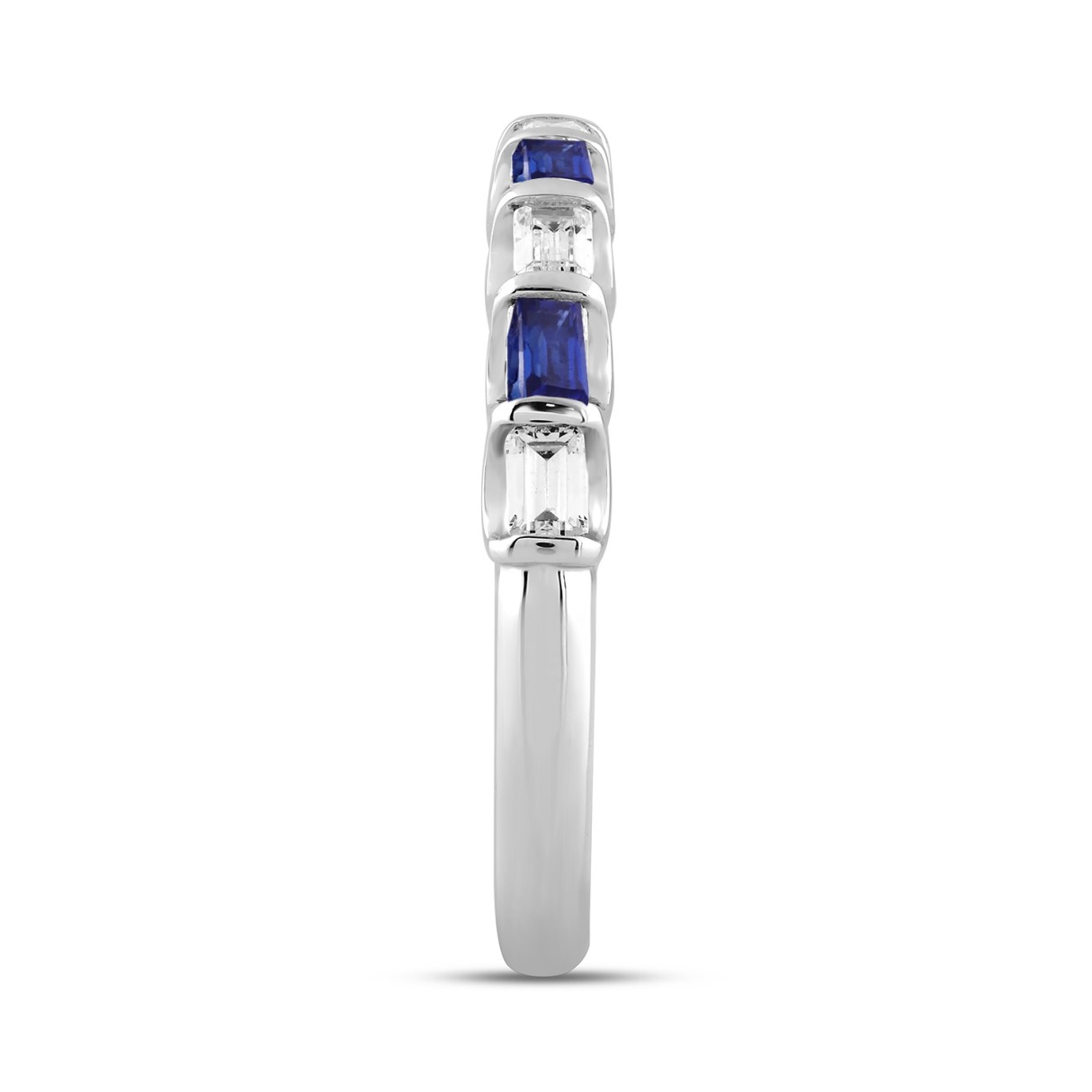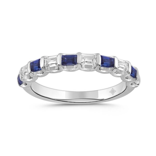 14K White Gold 1.00 CT Emerald Blue Sapphire & White Diamond Alternating Band Ring
