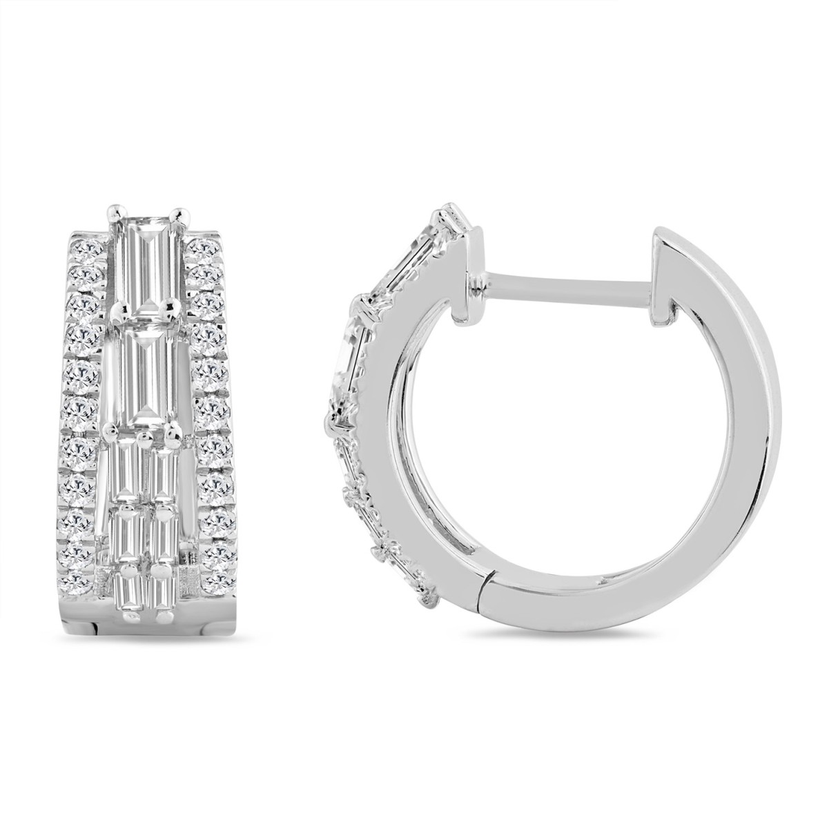 14K WHITE GOLD 1.00CT ROUND/BAGUETTE DIAMOND LADIES EARRINGS