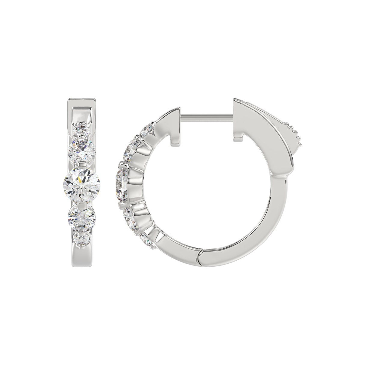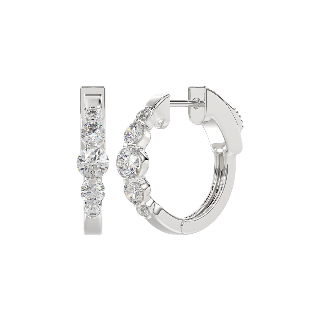 14K WHITE GOLD 1.00CT ROUND DIAMOND LADIES HOOPS EARRINGS