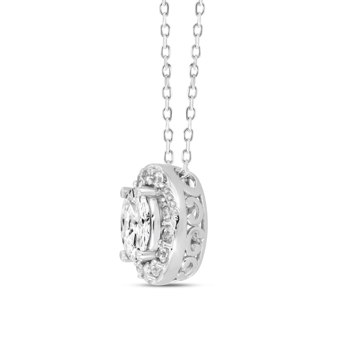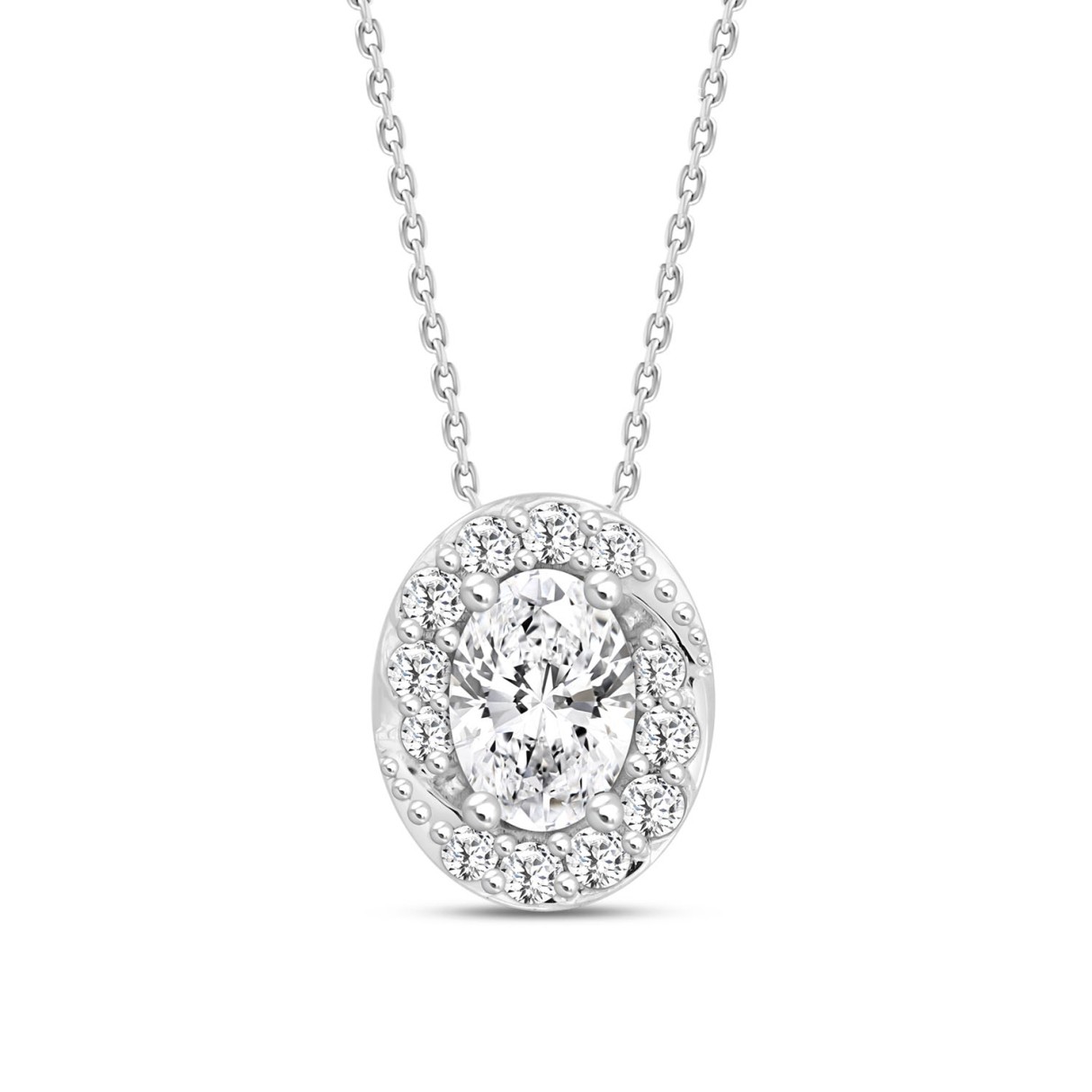 Home Necklaces & Pendants 14K WHITE GOLD 1.00CT ROUND/OVAL DIAMOND LADIES PENDANT WITH CHAIN (CENTER STONE OVAL DIAMOND 3/4CT)