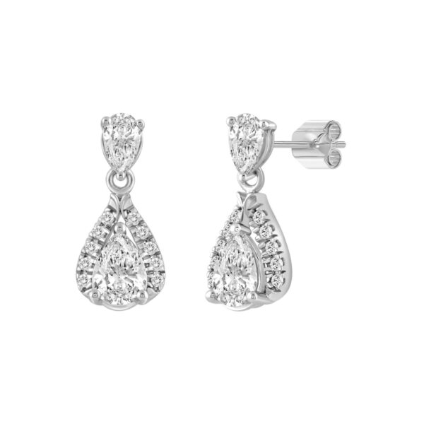 14K WHITE GOLD 1.00CT ROUND/PEAR DIAMOND LADIES EARRING