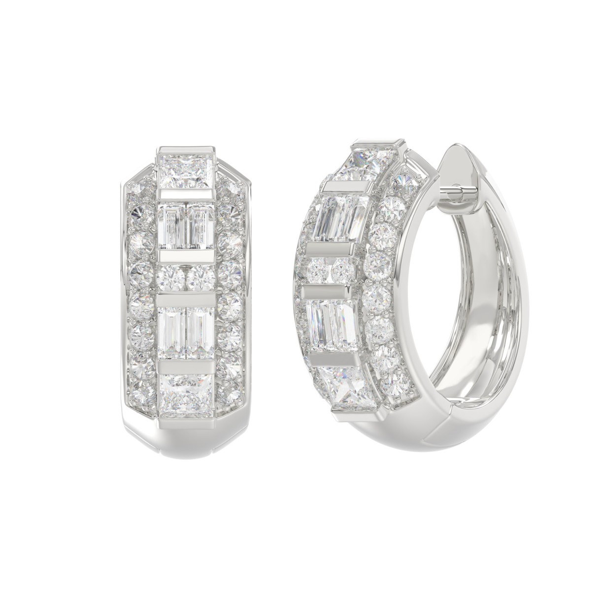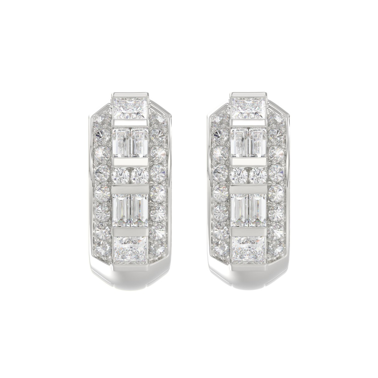 14K WHITE GOLD 1.00CT ROUND/PRINCESS/BAGUETTE DIAMOND LADIES EARRINGS