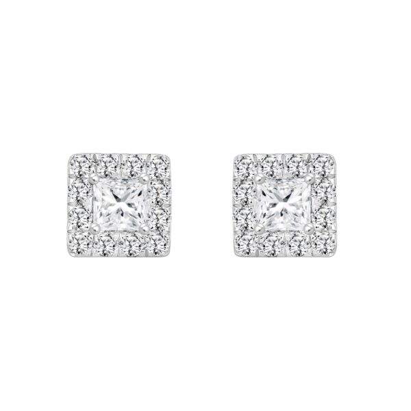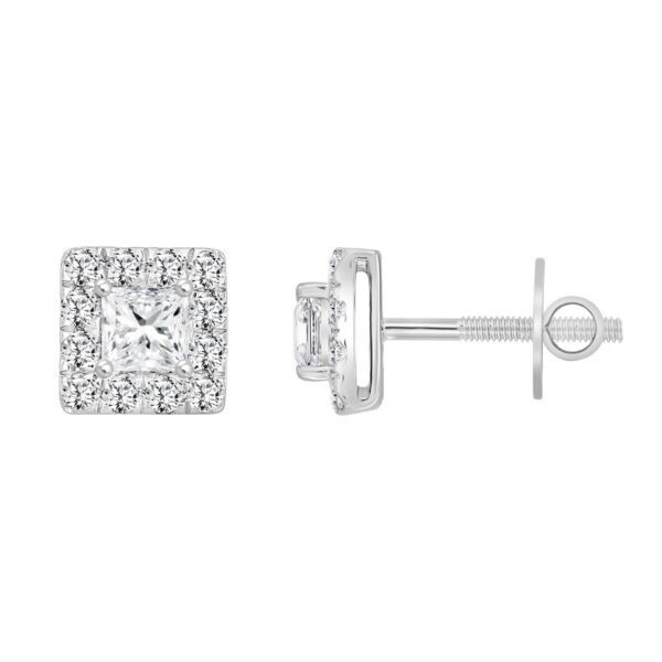 14K WHITE GOLD 1.00CT ROUND/PRINCESS DIAMOND LADIES EARRINGS