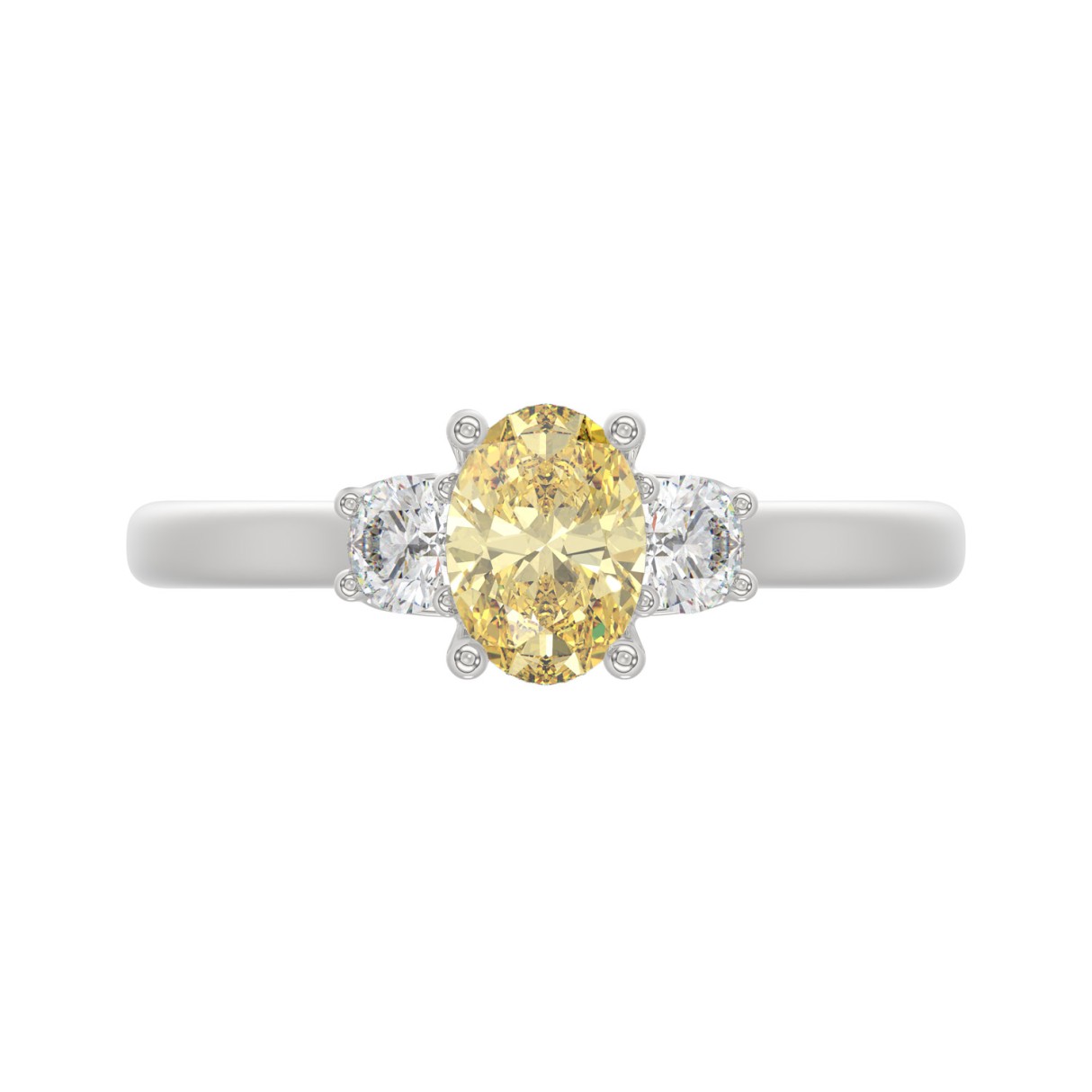 14K WHITE GOLD 1.00CT ROUND/YELLOW OVAL DIAMOND WHITE GOLD LADIES RING (CENTER STONE YELLOW OVAL DIAMOND 3/4CT)