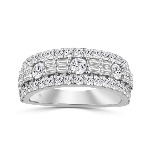 Home Rings 14K WHITE GOLD 1 1/2CT ROUND/BAGUETTE DIAMOND LADIES BAND