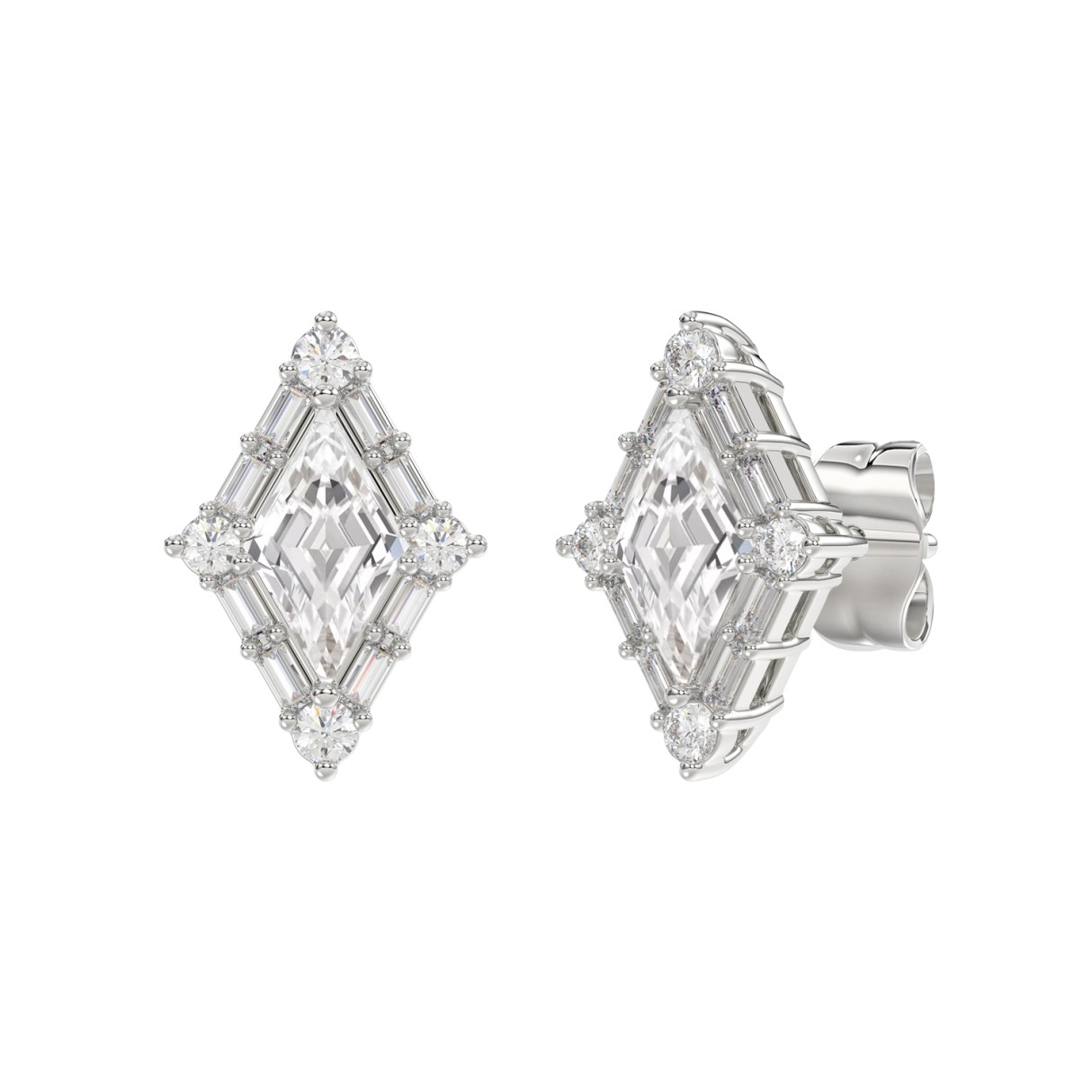 14K WHITE GOLD 1 1/4CT ROUND/BAGUETTE/KITE STEP CUT DIAMOND LADIES EARRINGS