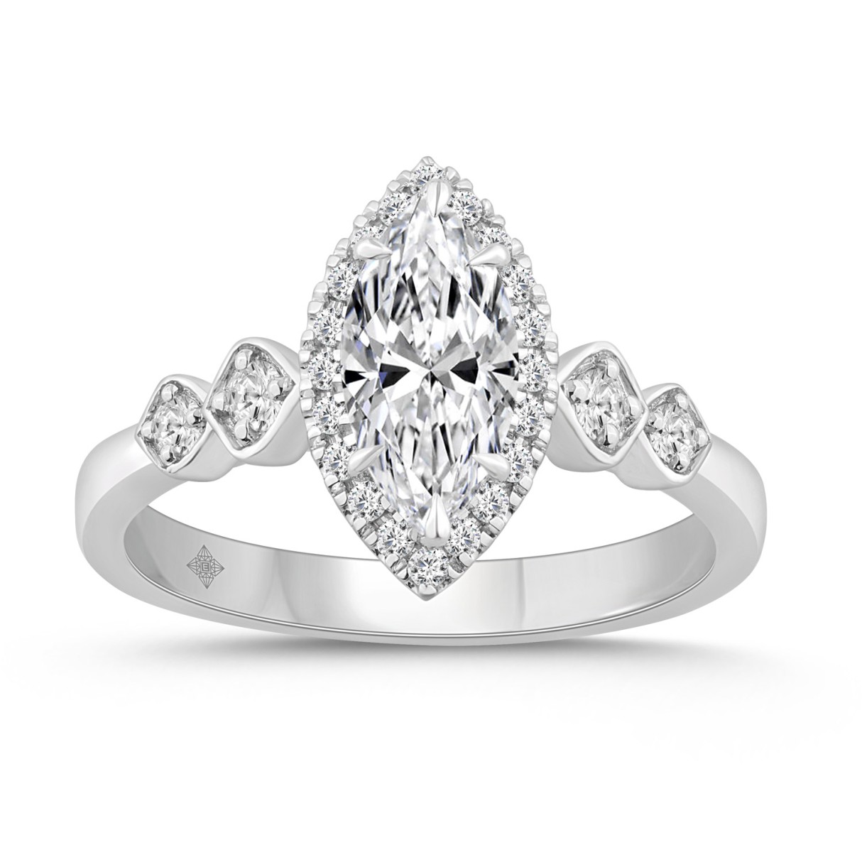 Home Rings 14K WHITE GOLD 1 1/4CT ROUND/MARQUISE DIAMOND LADIES BRIDAL RING (CENTER STONE MARQUISE DIAMOND 1CT)