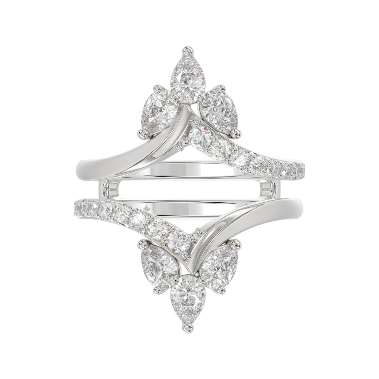 Home Rings 14K WHITE GOLD 1 1/4CT ROUND/PEAR DIAMOND LADIES WRAP RING
