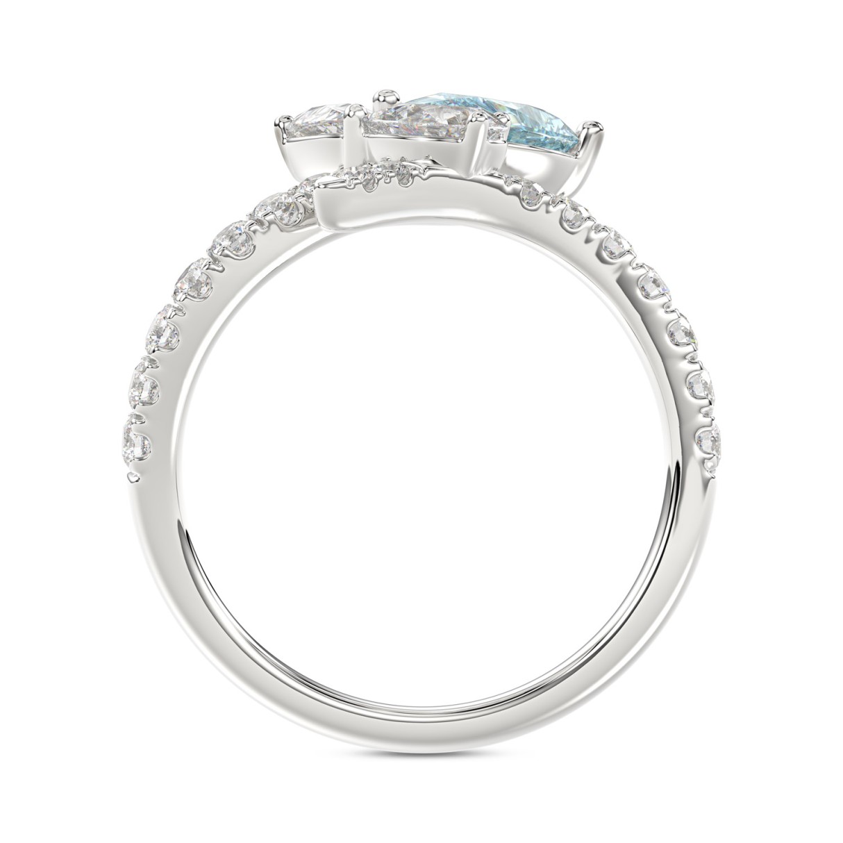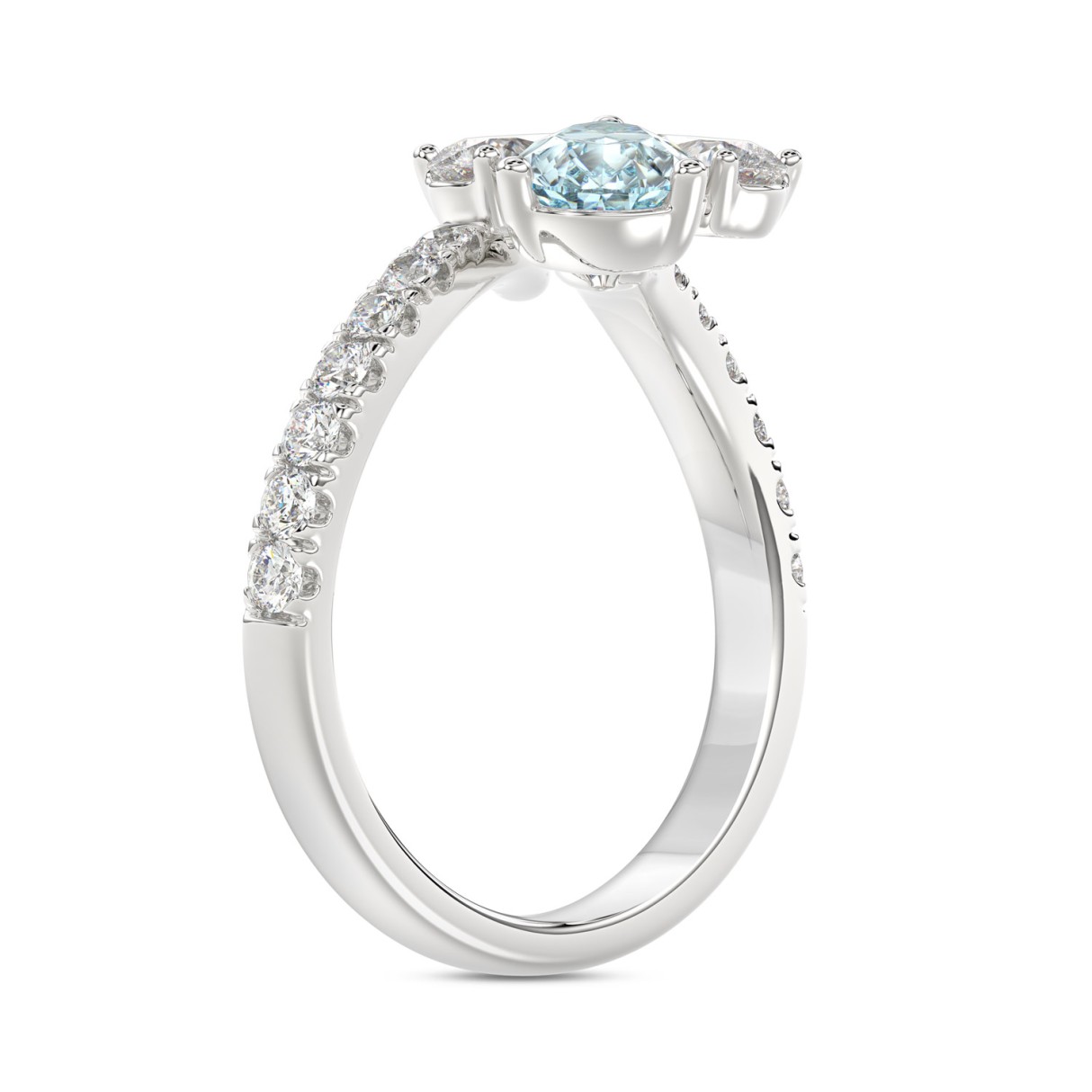 14K WHITE GOLD 1 3/4CT ROUND/PEAR/BLUE PEAR DIAMOND LADIES RING (CENTER STONE PEAR DIAMOND 1CT)