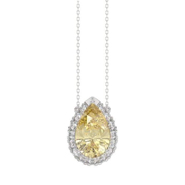 14K WHITE GOLD 1 3/4CT ROUND/YELLOW PEAR DIAMOND LADIES PENDANT WITH CHAIN (CENTER STONE PEAR DIAMOND 1 1/2CT)