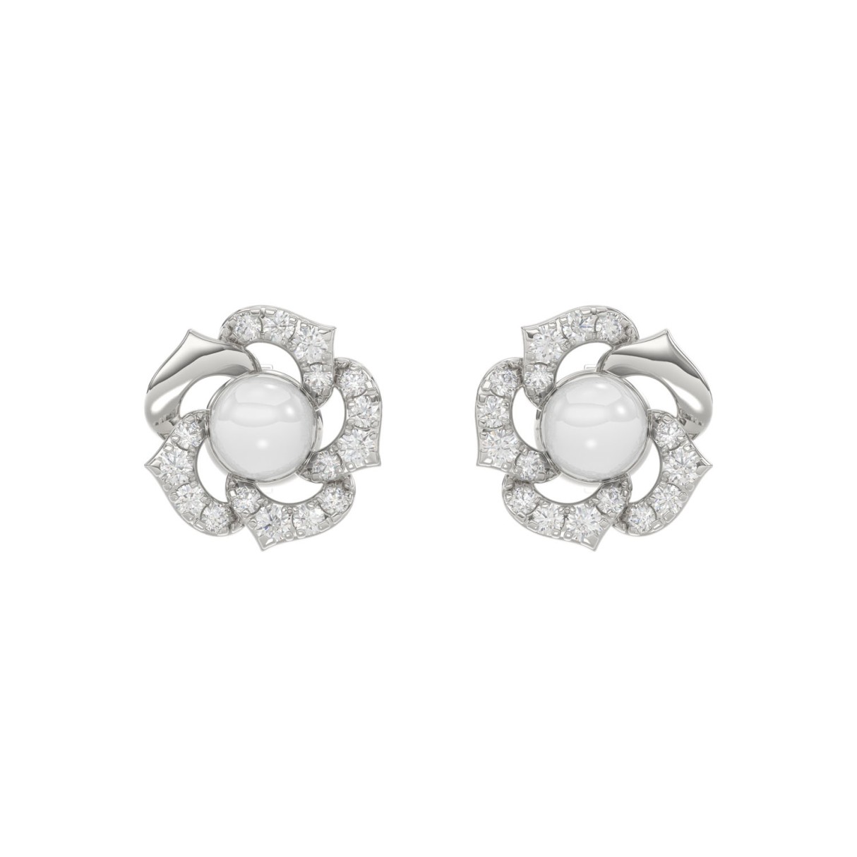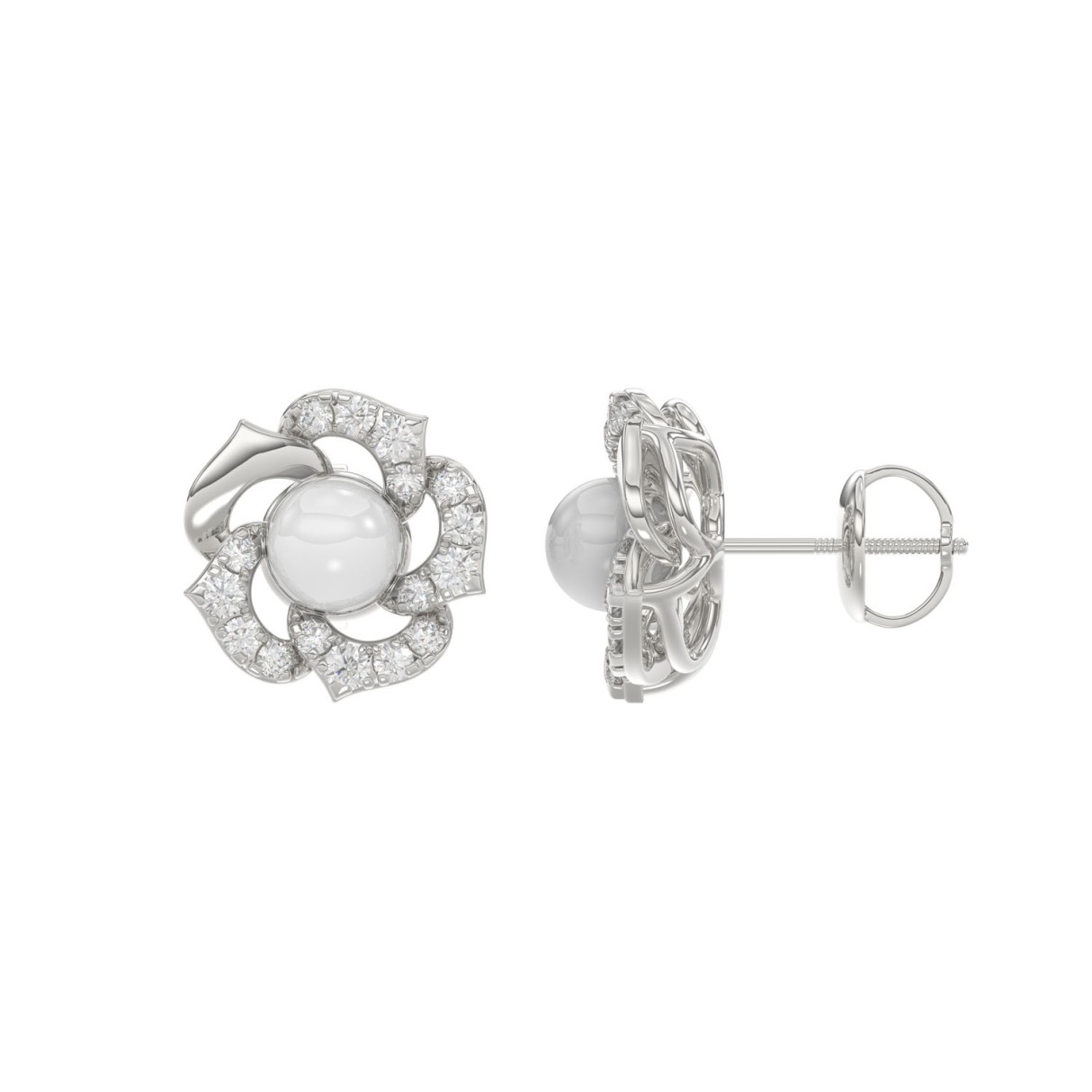 14K WHITE GOLD 1/4CT ROUND/PEARL DIAMOND LADIES EARRINGS