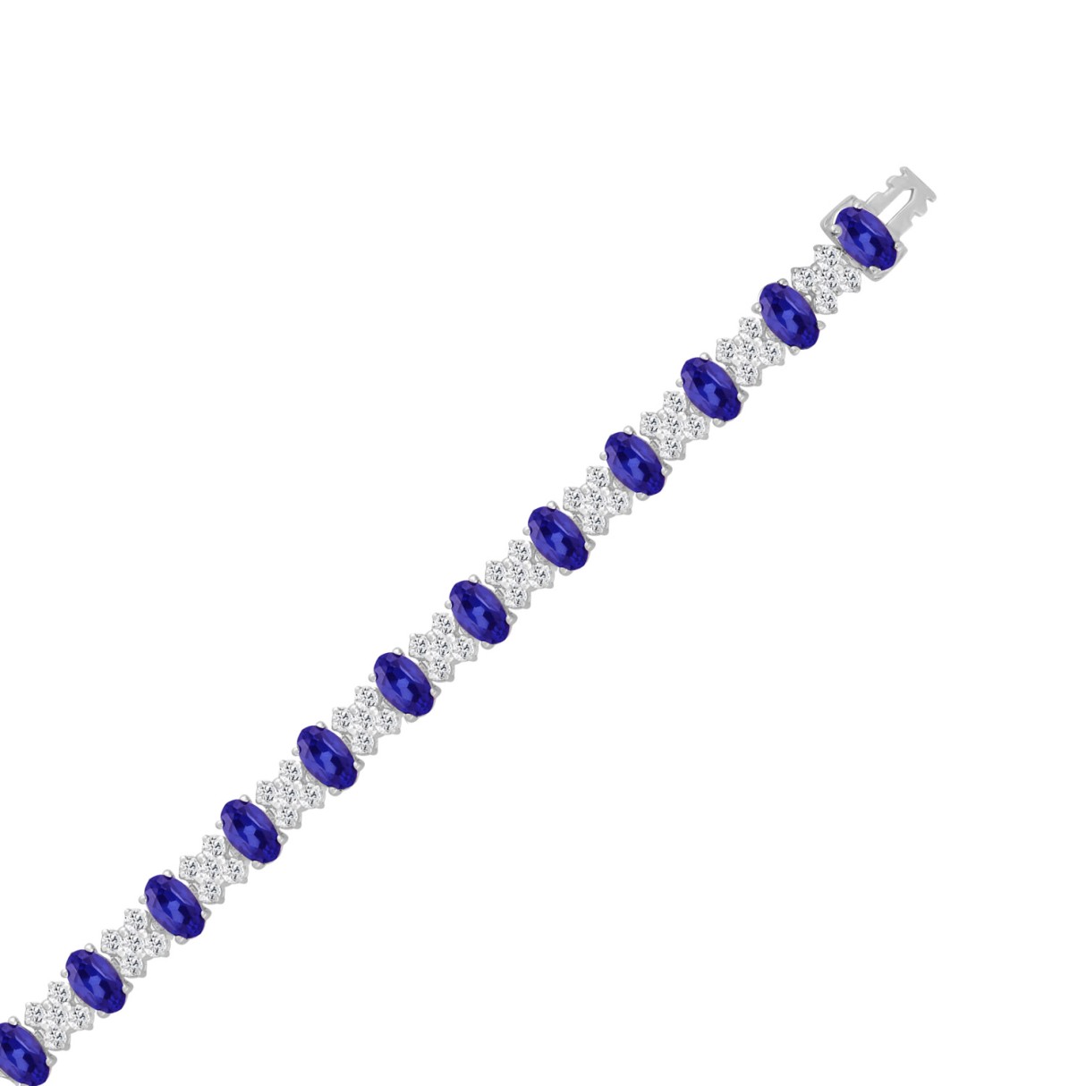 14K WHITE GOLD 10 3/8CT ROUND/TANZANITE OVAL DIAMOND LADIES BRACELET